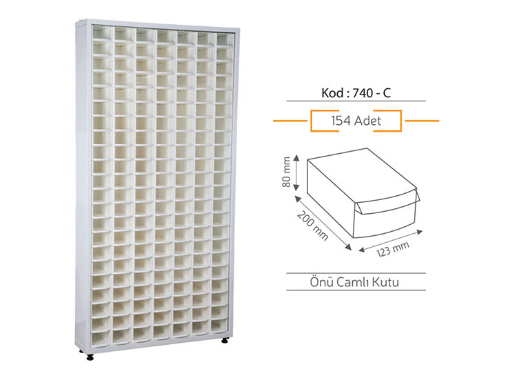 Kutu Kapasitesi: 154 adet 740-C kodlu plastik çekmeceli kutu.